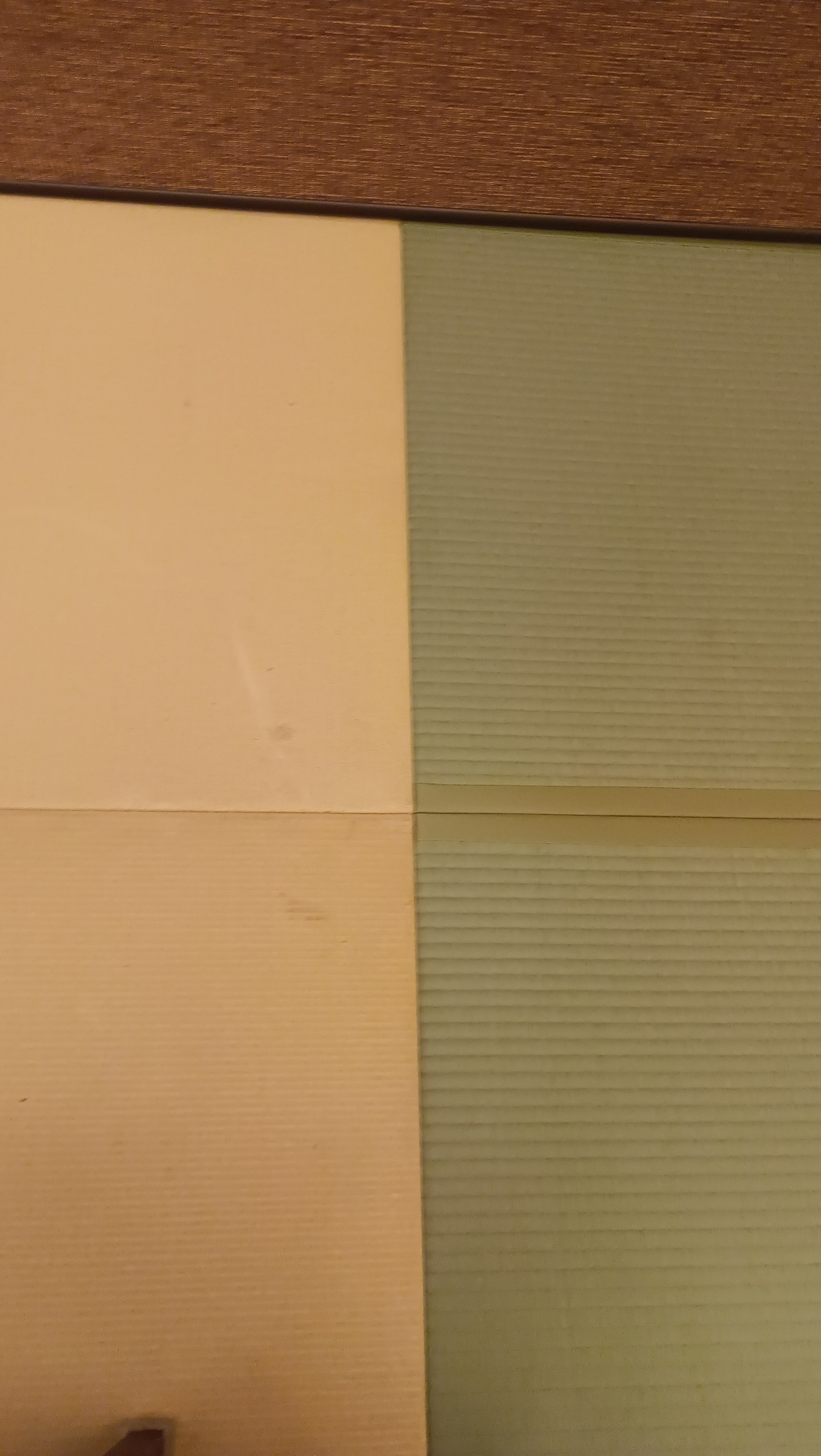 画像の左側が施工前の縁なし畳で、右側が施工後の縁あり畳です。畳表も加工品の和紙から天然のい草のものに変わります。