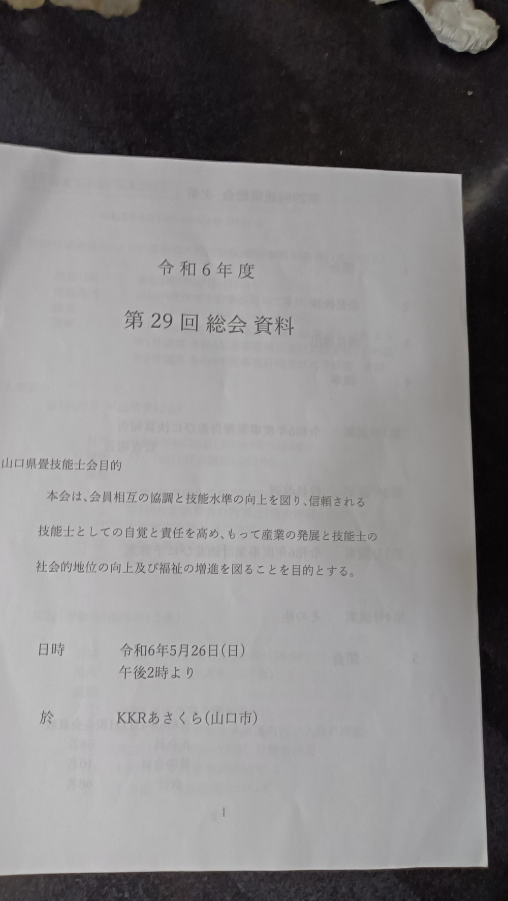5/26(日)に山口県畳技能士会の総会が山口市のKKRあさくらでありました。