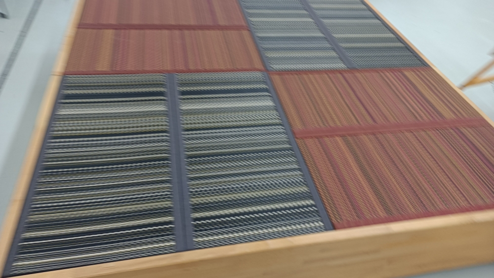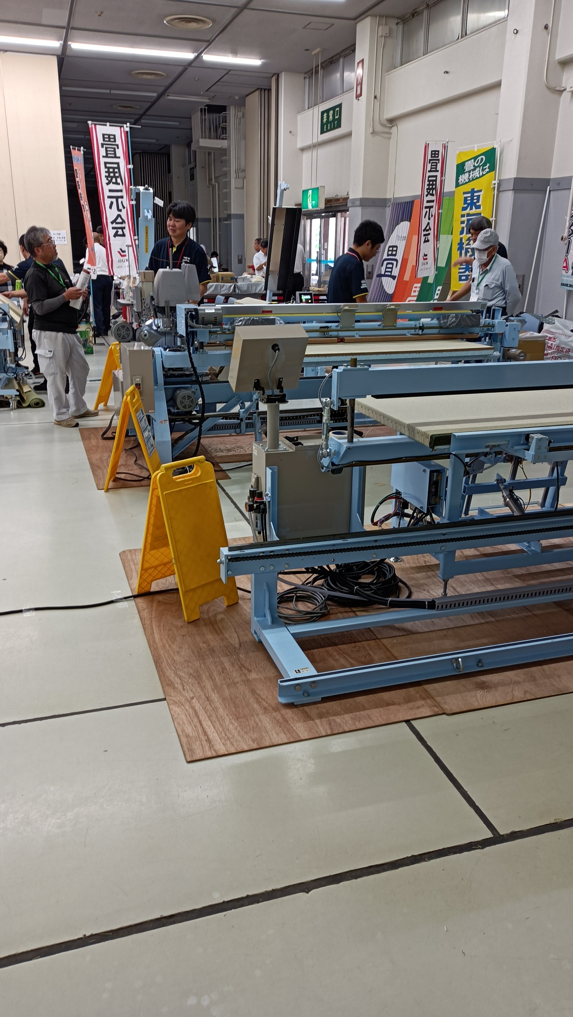 今年も畳表や畳縁、畳床はもちろん製作機械や工具など定番のものから最新のものまで展示されていました。