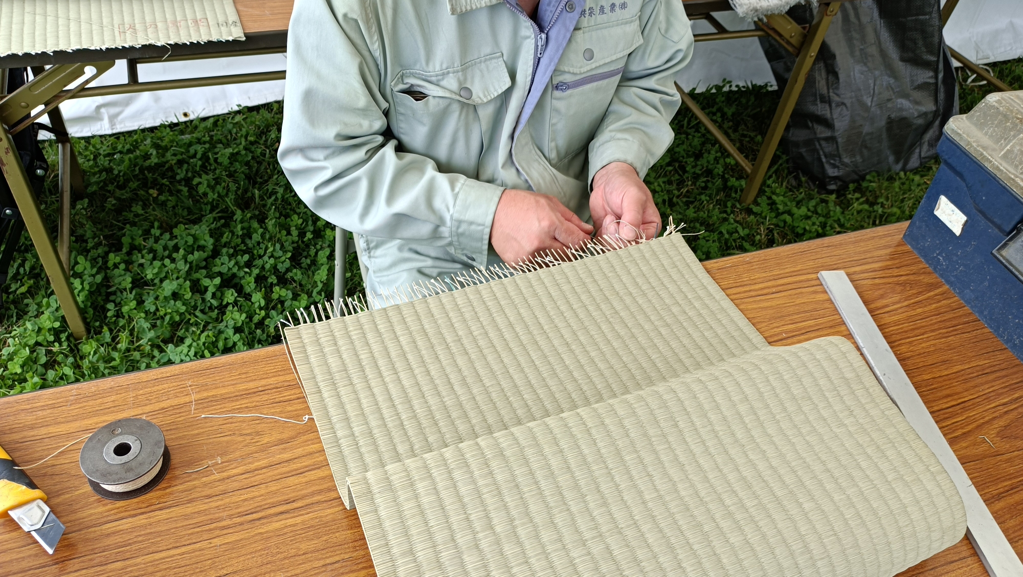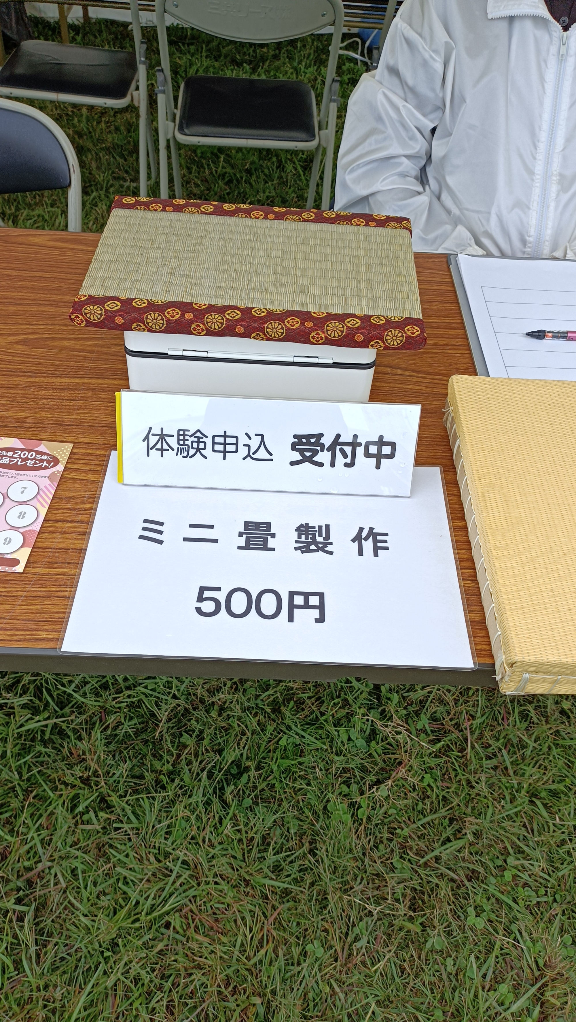 2日目は雨の心配もなく、ミニ畳づくり体験では予想以上にたくさんの方々に参加していただき、用意した材料がなくなってしまうほどでした。